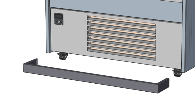 Painted steel cover designed to hide unit castors in front of house display.